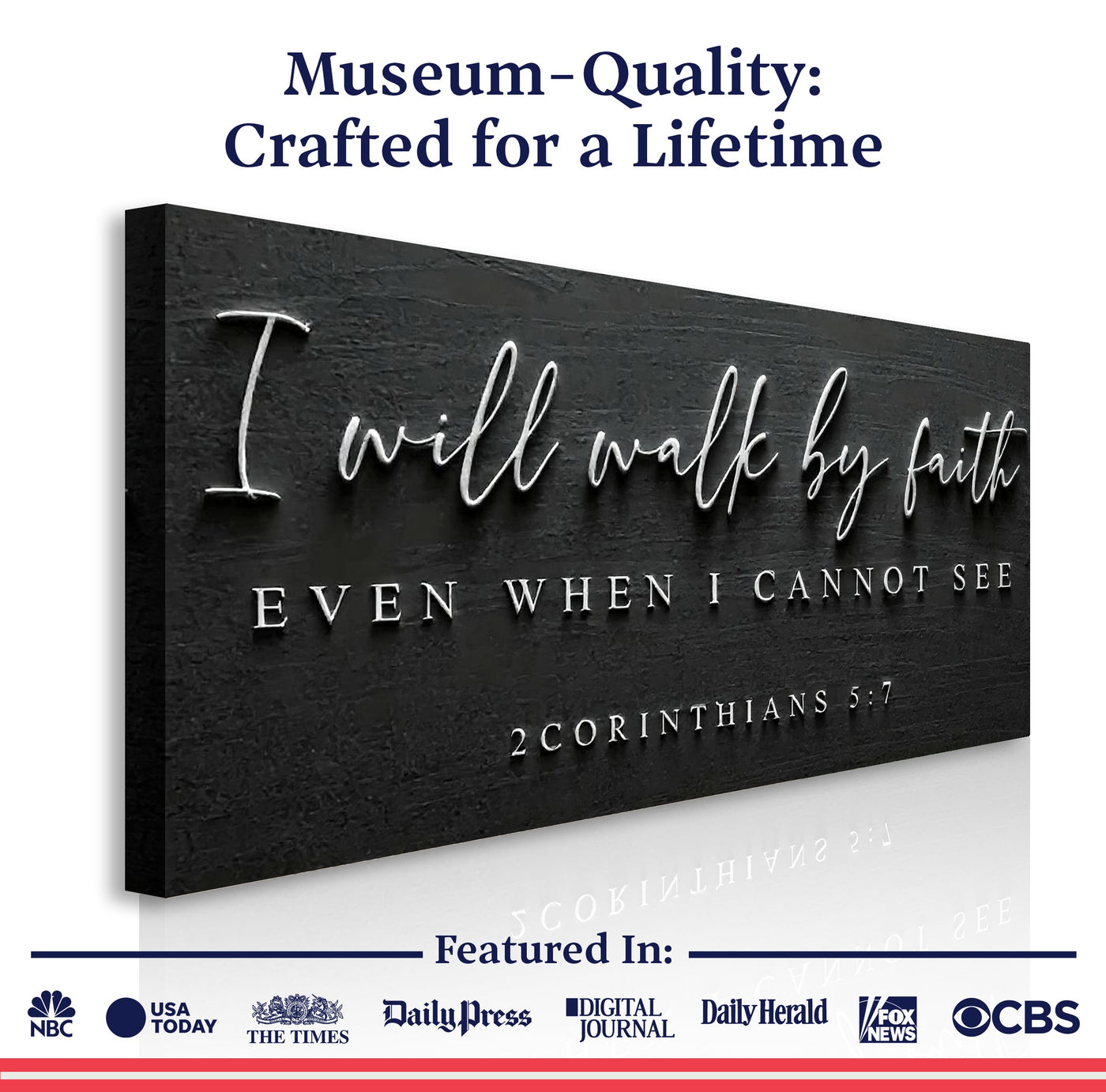 I Will Walk By Faith - 2 Corinthians 5:7 Faith Sign III - 20x10 inch Medium Premium Gallery Wrapped