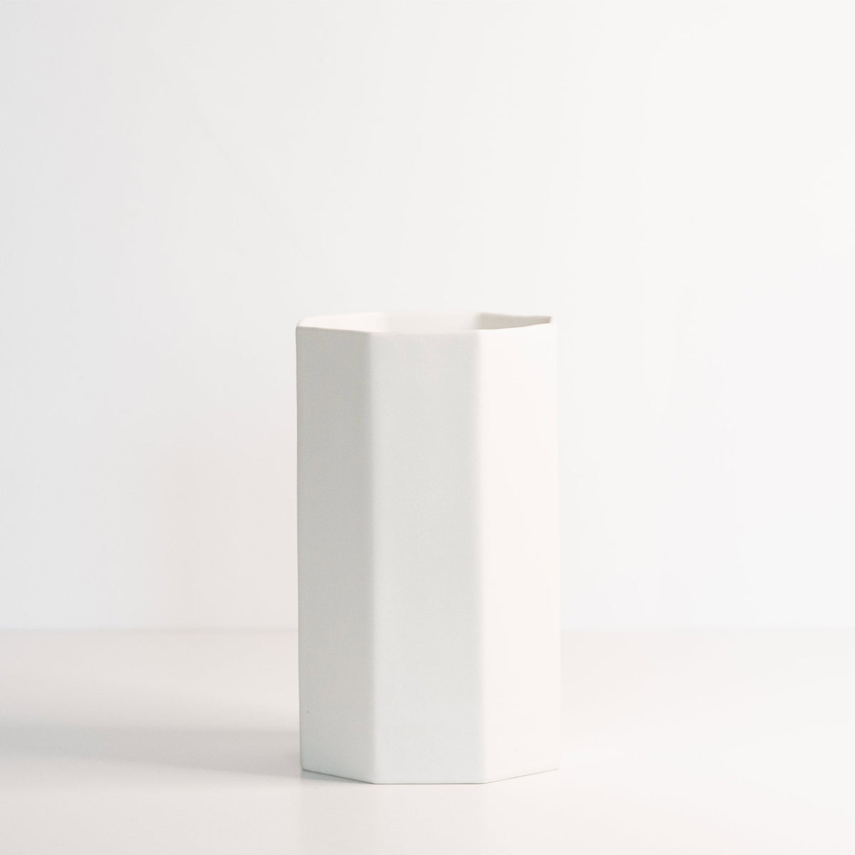 Ember Collective specializes in handmade ceramics from porcelain that fit perfectly in your kitchen and with modern farmhouse decor, surpassing both terracotta and stoneware clay pottery in quality. The Ceramic Bouquet Vase is the perfect statement piece to hold large flower bouquets inside your home, as a table setting, or for a centerpiece for wedding decor. The tall, octagonal shape of this table vase is strong enough to showcase long stemmed sunflowers and roses or flower arrangements with a variety of different colored and sized flowers. Buy more than one for a vase set and upgrade from the standard glass vase, by choosing the timeless look and feel of porcelain.